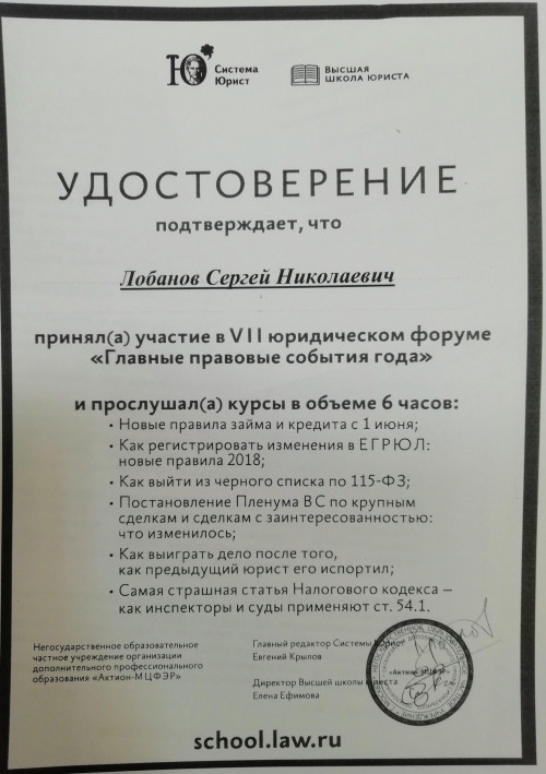 • c 11.11.2002 года – адвокат по настоящее время. Являюсь сотрудником Правовой Компании Защита Права.